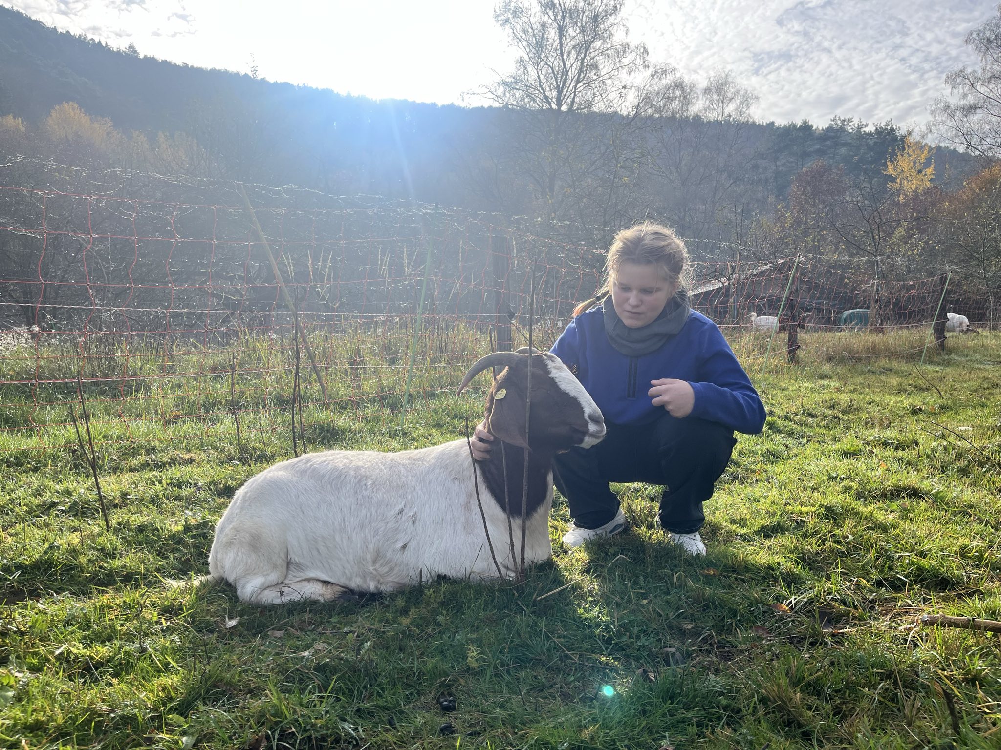 Die Klassen 5/6 und 6a waren bei den Ziegen in Rinnthal. Wir sind mit dem Zug dorthin gefahren und vom Bahnhof zur Weide gelaufen.